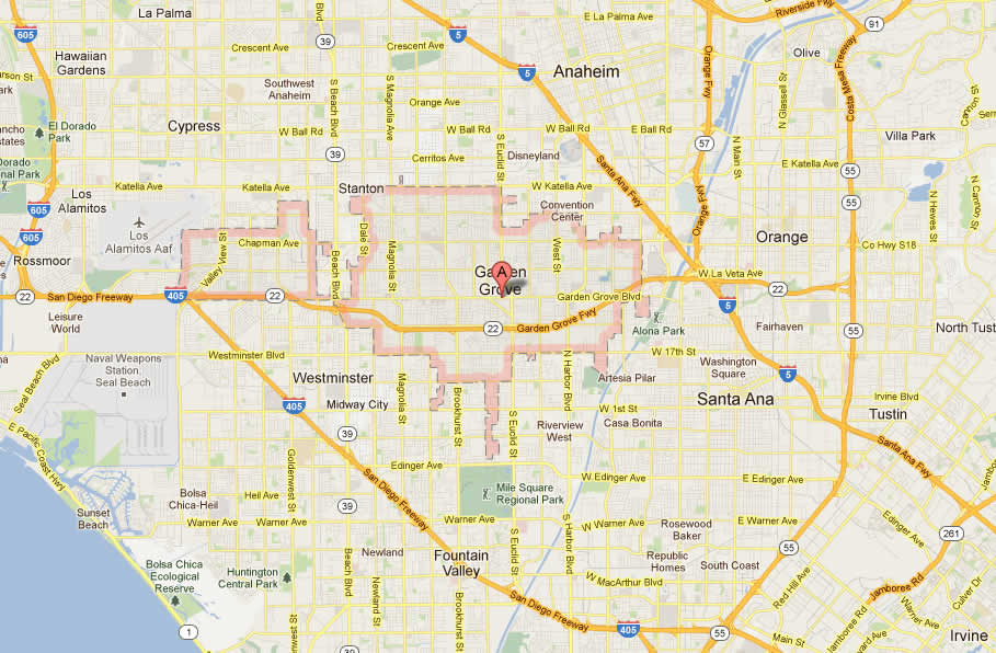 Accédez plan de Garden Grove California, Garden Grove California carte de la ville, des images satellites, Garden Grove California villes plan, la carte politique, la route et les cartes de circulation.